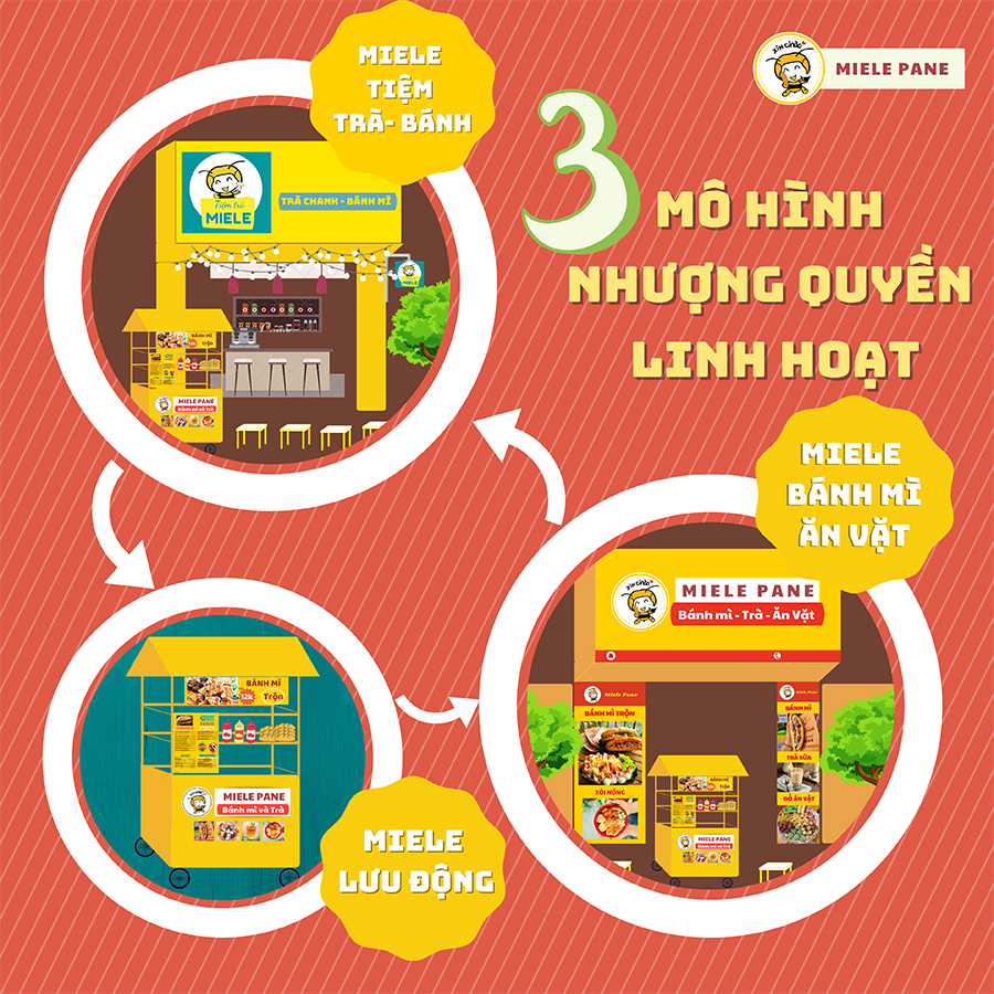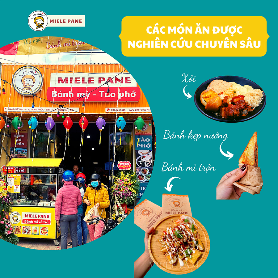 Không chỉ là 1 thương hiệu chuyên về bánh mì. Miele Pane còn cung cấp menu các món xôi , bánh bao và list đồ ăn vặt gồm 100 món cho đối tác tự chọn.